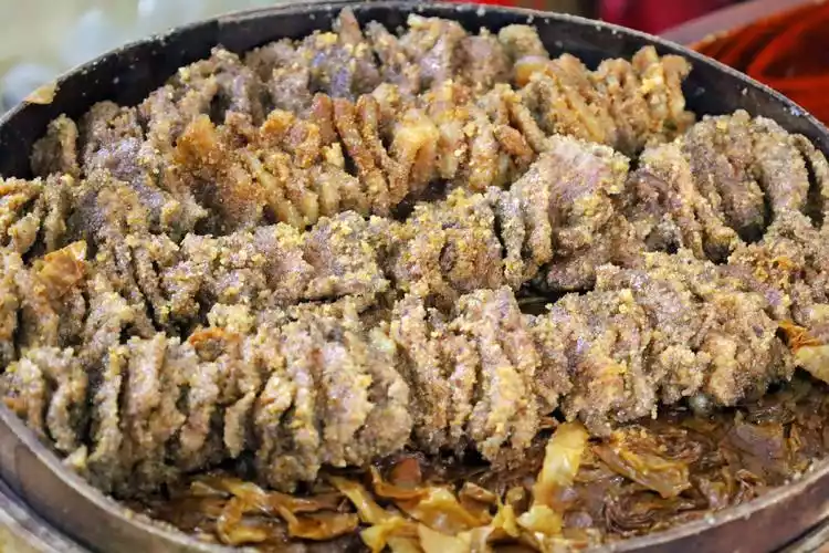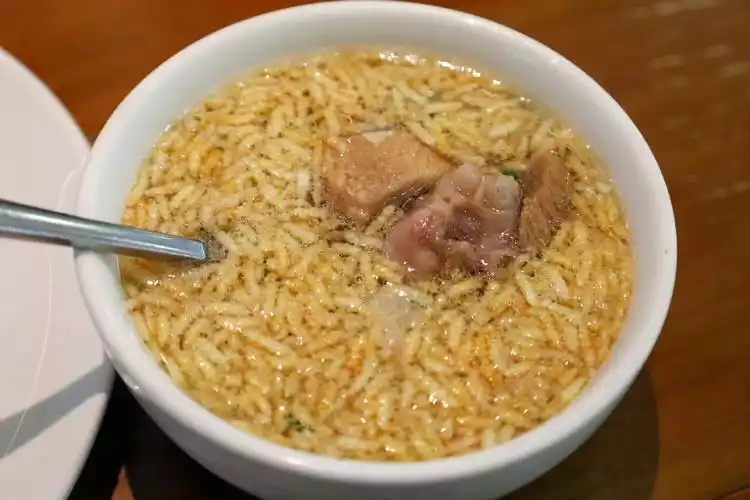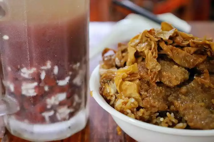 A bowl of steamed rice with pork scraps contains pork scraps, bean curd skin and glutinous rice. It tastes okay, but since I don’t like glutinous rice, most of it was eaten by my friends.