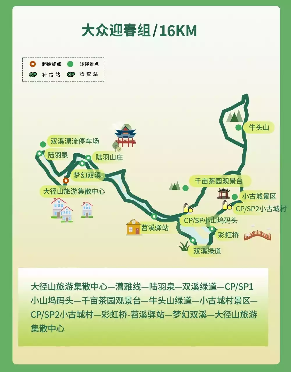 Activity Route: The activity route is flat throughout the whole journey around Tiaoxi River and tea plantations. You will climb to the top of Niutou Mountain to see the vast green Jingshan Zen Tea Plantation, experience the April tea picking up close, and breathe in the fresh air. The return journey will follow the provincial-level two most beautiful greenways, the "Xiaogucheng Greenway" and the "Shuangxi Greenway", and feel the vibrant colors of spring all the way.
