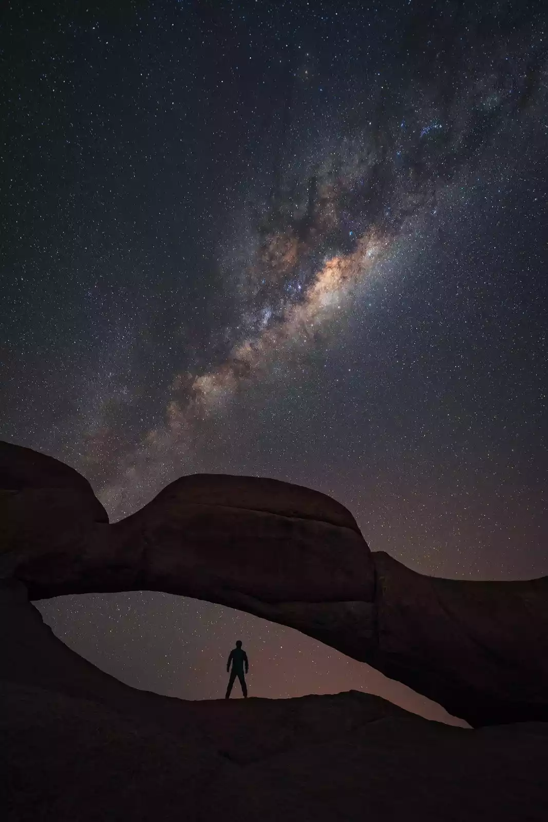In fact, in Namibia, as long as the weather is good and the moonlight is not strong, and you are in a place far away from light pollution, you can just look up and the entire Milky Way in the starry sky will be visible to the naked eye.