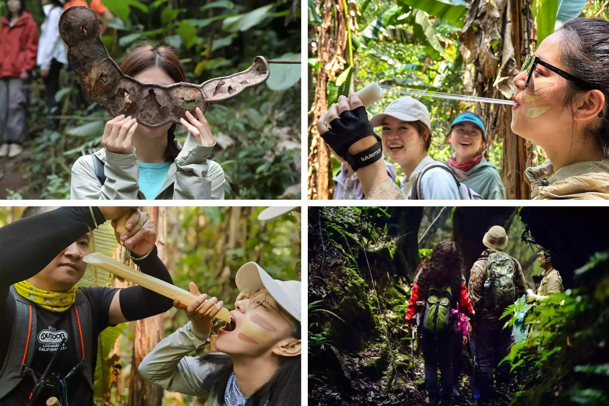 Your Jino guide will teach you how to use natural minerals to create rainforest makeup, search for bamboo snakes in the morning mist, enjoy a rainforest feast using banana leaves as plates, and even climb a 20-meter-high banyan tree.