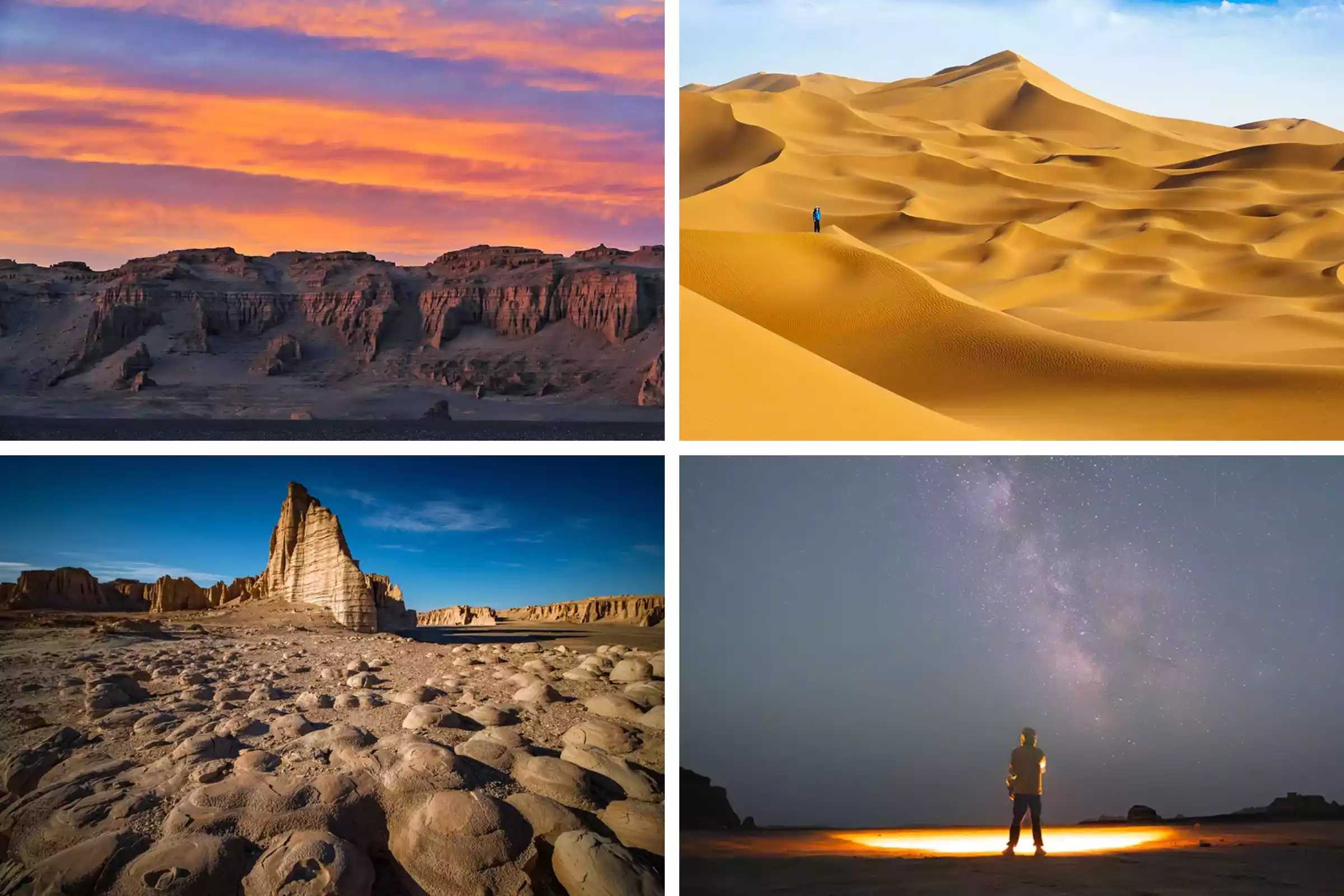 Unlike the Dunhuang Gobi Desert, the wind-eroded landforms of Dahaidao are in their "young and middle-aged" stage. Their uniqueness lies in the magnificence of the "Ancient Silk Road". The 50-kilometer uninhabited hiking route connects the Yadan Group, the Flaming Mountain Canyon, and the Kumtag Desert. The wind-eroded landforms look like an alien world in the dusk light and shadow.