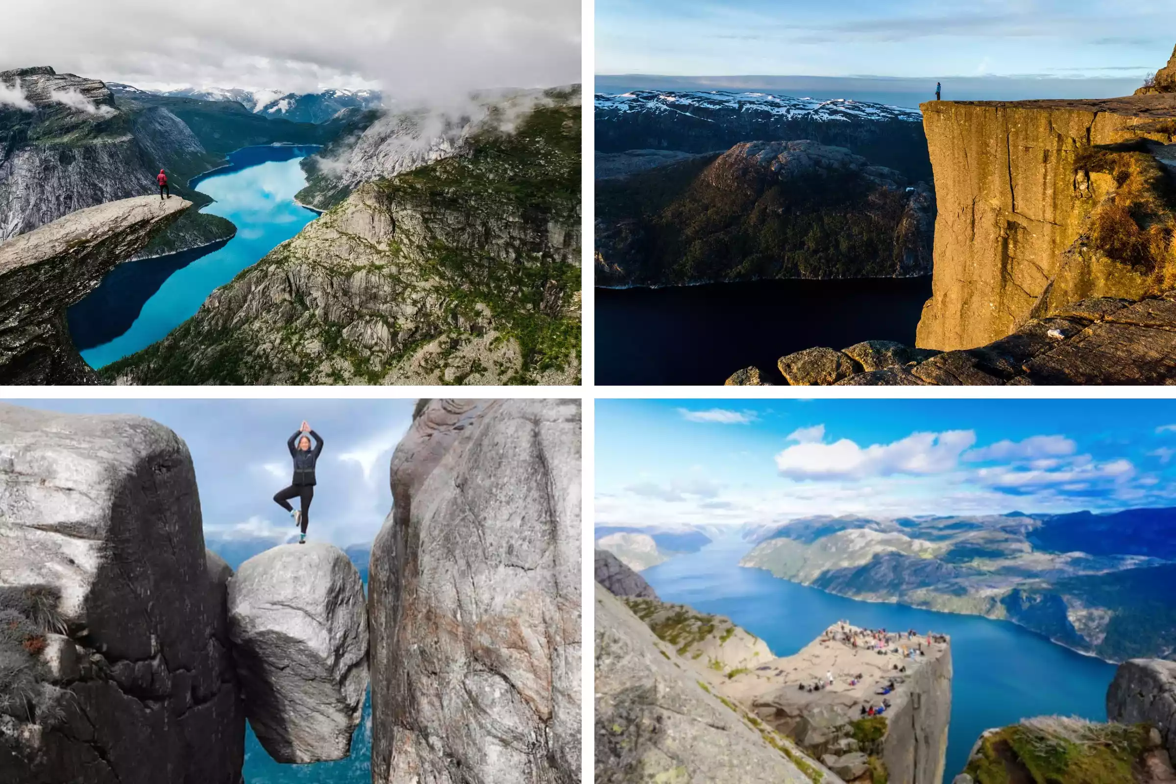 If you want to experience the essence of fjord landscapes, head to Norway! Norway's three most remarkable rocks are the Pulpit Rock, with its 604-meter vertical drop to the Lysefjord; the Miracle Rock, suspended a thousand meters below the surface, with just one cubic meter of rock wedged between two cliffs. Standing on the rock for photos requires courage; and the Devil's Tongue, with its 11-meter-long protrusion into the lake.