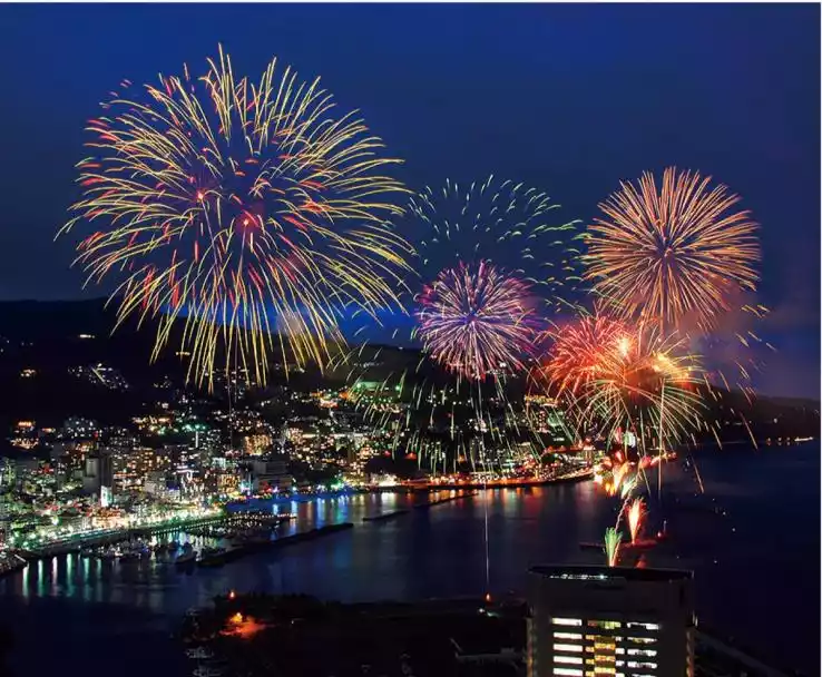 The fantastical sea fireworks display in Atami Bay, Shizuoka Prefecture, takes place year-round (most frequently in spring, summer, and autumn)