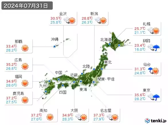 While southern regions like Kansai and Kyushu also experience relatively high summer temperatures,