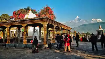 Arrive at the Shakti Temple on an island in the lake, and gaze up at the peaks of the Annapurna Mountains, a crown that encircles Pokhara. Stroll along the lakeside and marvel at the captivating scenery of Pokhara: the beautiful, clear Phewa Lake, the towering, snow-capped Annapurna Mountains, and the breathtaking lush greenery.