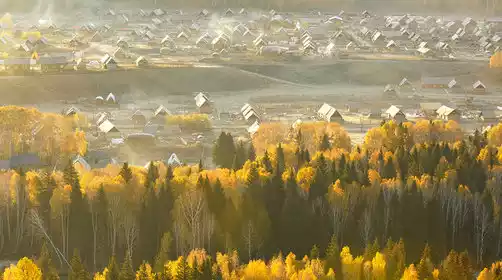 Afterwards, transfer to a scenic bus and travel along the China-Kazakhstan border highway to Baihaba Village, a quiet mountain village in the northwest of China, across the river from Kazakhstan. The villagers are a mix of Tuvans and Kazakhs. All the buildings in the village are made of wood, and the log cabins blend harmoniously with the surrounding environment, creating a sense of paradise.