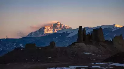 We then entered Everest National Park and transferred to a scenic bus at Zhaxi Zong Township for Everest Base Camp. This location is also a prime spot for photographing the sunset over Mount Everest, perfect for capturing snowy mountain scenery. Facing the biting cold wind and the lonely Mani piles, we bundled up in warm clothing and waited patiently for the moment when the sun would shine upon Mount Everest.