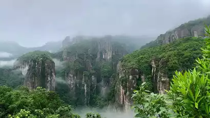 Then we arrived at Lingyan Scenic Area. The plank road is surrounded by beautiful mountains and clear waters. Here we can visit Longbi Cave and go deep into Wolong Pond. The water of Wolong Pond is clear and goldfish swim in it, as if floating.