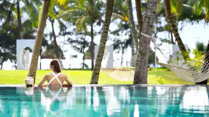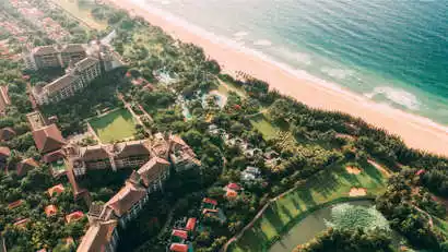 The hotel is located on Clearwater Bay, the world's third "Singing Beach," boasting 12 kilometers of pristine white sand. The hotel occupies 160,000 square meters, surrounded by 110,000 square meters of lush tropical gardens. Designed by internationally renowned designer Marina Baracs, the hotel's nature-themed interiors blend captivating coastal elements with distinctive cultural characteristics. 24-hour attentive butler service ensures a private and quality vacation.