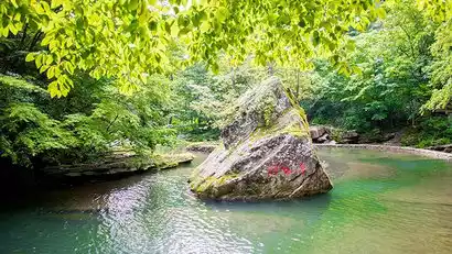 Legend has it that fairies gather at Yunv Peak, a peak that, from afar, resembles a graceful young woman, changing her attire with the changing seasons. The dense primeval forests of Yunv Peak obscure the sky, blocking out the sun. Trees grow among the rocks, and the trees reflect the rocks. Walking along the Yudai River, one can experience the scene described in ancient poetry: "The bright moon shines among the pines, and clear springs flow over the rocks." The Yuzhutan River is another jade bracelet worn by fairies. Jade in this world adorns the wrists of beautiful women. The jade bracelets here may be admired from a distance, but not touched.