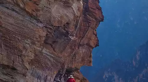 Led by a guide, explore Tiger Leaping Gorge along the Tiger Leaping Gorge High Route. This mostly flat route features a few descents. This section, considered one of the world's ten most iconic hiking routes, is renowned for its breathtaking beauty and dramatic scenery (risk management is recommended). Experience breathtaking drops and breathtaking rock faces on the cliff path. Sunlight streams into the canyon, shimmering on the water at the gorge's more than ten-meter-wide mouth. Below, the river ripples in whitecaps, surging from the drop. Above, the illuminated cliffs, blue sky, and white clouds create a breathtaking, breathtaking scenery.