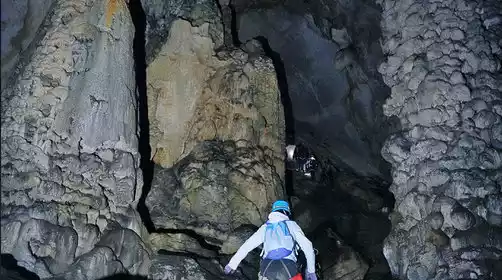 Baita Cave has been explored to have a main cave of over 6,000 meters long and a branch cave of over 3,000 meters long, covering an area of approximately 20,000 square meters. From the entrance, the instructor begins laying the rope, and then goes through a series of technical operations such as traversing, descending, traversing again, and descending again. Depending on the number of people and the condition of the team members, it takes about 4-6 hours in the cave.