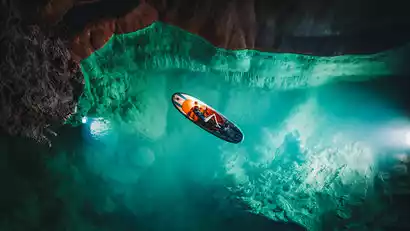Enter the cave: Paddleboard through countless beautiful underground pools, marvel all the way, and follow the guide to bravely explore the center of the earth