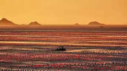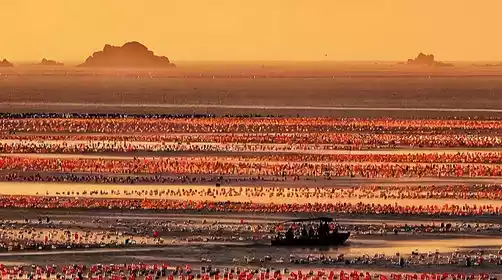 Go to the Rainbow Sea at the right time to photograph the sunset. The Rainbow Sea is actually an ecological oyster breeding base in South Australia. Oysters are cultivated under rows of colorful new environmentally friendly buoys. The criss-crossing buoys are arranged on the sea surface, forming a unique marine breeding landscape, which blends with the beautiful sunset and is unique.