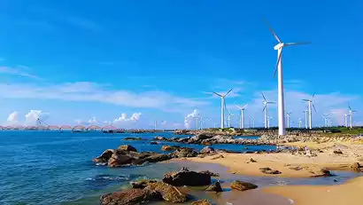 Banmei Village in Jinghai Town is a stunning sunrise photography location on the eastern Guangdong coast, showcasing windmills, reefs, and lighthouses. The coastal wind farms and natural reefs create a unique mountain and seascape.