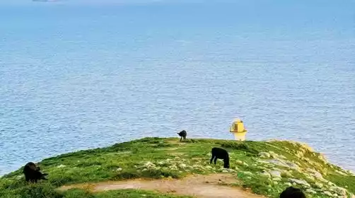 We set off to start today's hiking trip. Along the way, we will see the lighthouse! In addition, we can also see free-range cattle and sheep, which are either basking in the sun on the hillside or strolling slowly, enjoying the pleasant weather on the island.