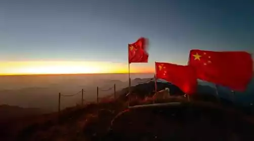 18:00: After setting up camp, everyone followed the leader and headed to the summit of Jinzijian to see the sunset. (When you see the sunset over Jinzijian, you'll understand why it's called Jinzijian.)
