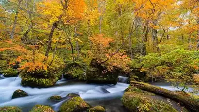 Oirase Gorge: The Oirase Gorge originates from Lake Towada on the border of Aomori and Akita prefectures and flows through the scenic Oirase Gorge. For centuries, it has inspired painters and poets. Hiking or cycling along the riverbank is the best way to explore the gorge. A dedicated vehicle will take you to the mouth of Lake Towada, where you'll begin your hike and continue all the way to the Ishido Rest Area. The total distance is approximately 8 kilometers, and you'll encounter numerous small waterfalls with unique names, such as Shiraishi Falls, Kumoi Falls, and Soryu Falls. Some say a stroll here is like a Zen meditation. Embrace the pristine forest and breathe in the natural world amidst beech, Japanese oak, maple, and white cedar trees. The entire concept of forest therapy is based on this magical interaction.