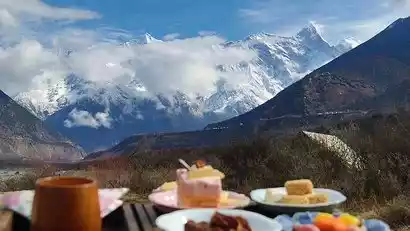 Sitting on the expansive terrace by the Yarlung Zangbo River, you'll be greeted by rolling green hills and distant snow-capped peaks. On the small table before you, you'll find steaming, milky butter tea or the rich, sweet tea of the plateau, paired with authentic handmade Tibetan snacks. With the magnificent mountains and rivers as your backdrop, let your taste buds immerse in the tranquility of Nyingchi's charm.