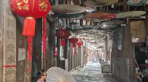 Known as the "Hometown of Chinese Oil-Paper Umbrellas," this area boasts numerous ancient buildings, most of which are wooden. Strolling through its streets is a truly insightful experience. Old-fashioned blacksmith shops, simple barbershops, and time-honored noodle shops evoke the flavor of bygone times.