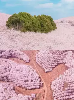 使用无人机拍摄茶园与樱花交相辉映的独特景象,轻松拍出富有质感的照片。