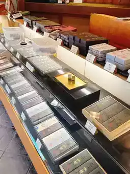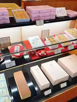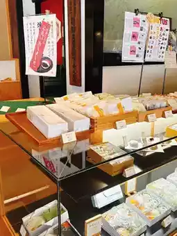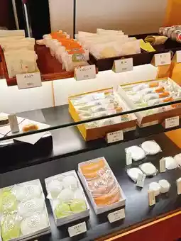 甘井堂总店位于商业街上。我是工作日中午左右到的,商业街上人不多,店里也很安静。店里摆满了各种各样的日式点心,有些我见过,但很多都是第一次见。