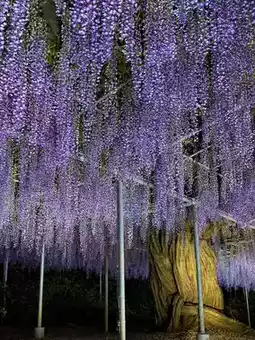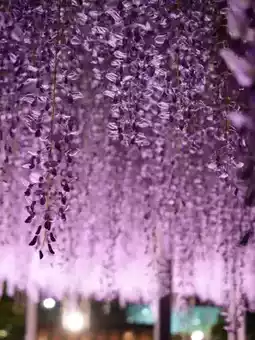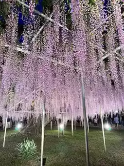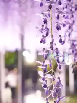 节日期间,灯光璀璨,更添紫藤的迷人魅力。