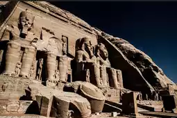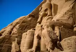 帝王威严:站在拉美西斯二世的巨型雕像(脚趾与成人身高相当)下,仰望他王冠上的双蛇徽章——象征着对上下埃及的统治——感受“神王”的视觉威压。