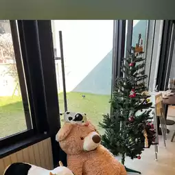 ,可爱至极!一进门就能看到一头奶牛摆件。外观自然可爱,但走进店内,你会更加惊喜。巨大的毛绒熊和温暖的木质内饰让人倍感放松。