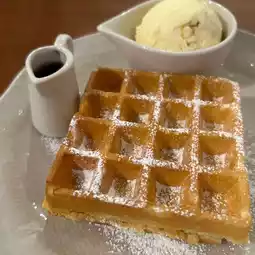 饭后,我们点了蓬松的华夫饼和一杯猫头鹰图案的咖啡欧蕾☕🧇