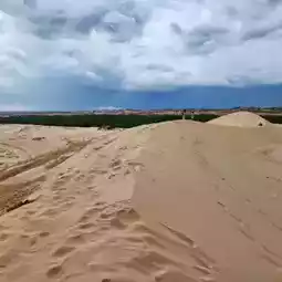 踩在柔软的沙子上感觉很舒服,而且在沙漠尽头看到绿洲般的异域风情也是一种难得的体验。