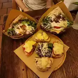 烤肉串除了肉的种类不同,其他都一样。外皮酥脆,里面却很嫩。新鲜的蔬菜和甜甜的酱汁搭配得很好。“布鲁斯凯塔”也很好吃,酥脆的面包上铺着番茄,再淋上融化的马苏里拉奶酪。奶酪咸香浓郁,增添了整体的美味,不过需要注意的是,它的味道稍微有点淡。