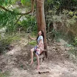 途中还有一个秋千……总之,穿过以灌木丛为中心的景色后,石灰岩峭壁开始出现在视野中。石灰岩峭壁和被风化侵蚀形成的红色土丘,以及另一侧的原始森林……有人称之为“小大峡谷”,但这有点夸张了……它很壮观,但又很小?哈哈哈哈。