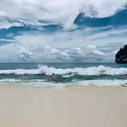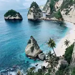 努沙佩尼达岛的钻石海滩 (Diamond Beach) 景色令人叹为观止,不负其作为巴厘岛最迷人海滩之一的盛名。海滩因其独特的钻石形岩石而得名,这些岩石更增添了它的自然之美。洁白无瑕的沙滩、清澈见底的海水和壮丽的悬崖峭壁令游客流连忘返。虽然沿着阶梯向下走可能有些挑战,但从观景点和海滩本身看到的景色绝对值得付出努力。