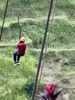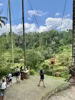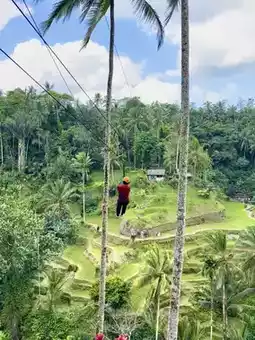 我们决定尝试一下高空滑索(350,000 印尼盾),在翠绿的稻田上空翱翔——脚下是壮丽的全景,那种刺激感令人难忘!滑过如此迷人的景色,感觉真是无比畅快。