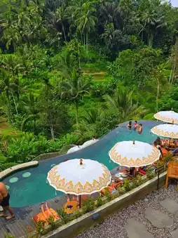 位于乌布北部的德格拉朗梯田是巴厘岛最著名的景点之一。层层叠叠的稻田沿着山谷绵延,高耸的椰子树点缀其间,远处云雾缭绕的雄伟群山构成了一幅绝美的背景。这片热带风光与宁静祥和的景色完美融合。梯田中使用的古老灌溉系统已被列入联合国教科文组织世界遗产名录。游客可以漫步于梯田之间,享受宁静的乡村氛围。然而,许多游客更喜欢在山谷的另一侧找一家观景餐厅,悠闲地坐在餐桌旁,远眺梯田和椰林的壮丽景色。梯田也是拍摄Instagram美照的绝佳背景。对于寻求刺激的游客来说,还可以选择乘坐高空滑索横跨山谷,从独特的视角欣赏梯田美景。这里是巴厘岛之旅的必游之地。