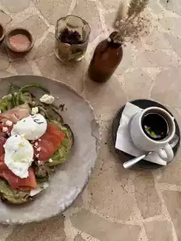 菜单兼具舒适与时尚——多汁的汉堡、清爽的沙拉碗、鸡尾酒,还有香醇的咖啡,让人忍不住想整天都喝个不停。🥥☕️