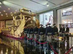 博物馆内详细介绍了文莱王室的历史、博尔基亚国王的成长经历,以及世界各地赠予国王的纪念品。其中,最引人注目的是重现博尔基亚国王登基时盛况的展览。由于馆内禁止拍照,因此无法拍照。但所有装饰华丽的车辆、国王的服饰以及列队迎接国王的民众,都按照真人大小制作,场面蔚为壮观。