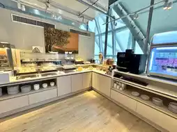 贵宾室内设有多个座位,并设有隔断,确保私密性。贵宾室内还设有洗手间。提供自助餐,包含各种美食和饮品,无限量供应。