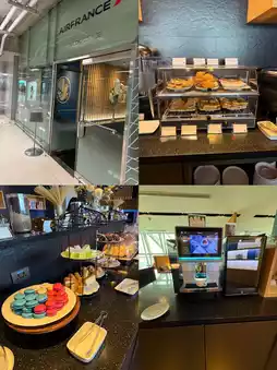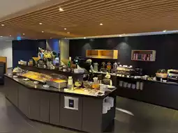 航贵宾室宽敞舒适,提供亚洲和西式餐点,包括马卡龙等甜点,以及茶、咖啡和酒精饮品。食物品质中规中矩。贵宾室设有洗手间和淋浴间,工作人员热情友好。贵宾室空间很大,座位充足。食物种类丰富,味道不错。咖啡也很好,还有糕点供应。总体来说,一切都还可以。