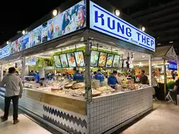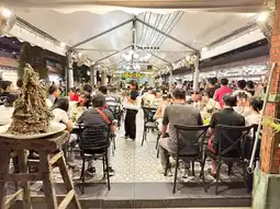夜市位置便利,井然有序,设施干净整洁,通道清晰。如果您计划前往曼谷,这里绝对是必游之地。一定要排队品尝这里的招牌菜——巨型火山猪肋排(Diaw Maekhlong)。