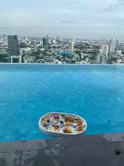 我们刚到酒店,还没来得及放下行李,前台就给我们免费升级到了豪华套房!🎉 前台工作人员非常友好,总是面带微笑,服务周到。🏨 酒店非常现代化,房间宽敞明亮,尤其是落地窗,可以欣赏到令人惊叹的城市夜景。无边泳池位于33层,傍晚在那里游泳,欣赏日落美景,真是美得难以形容。🤩