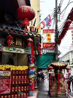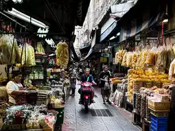曼谷唐人街充满了浓郁的东方风情!抵达目的地后,您将漫步于熙熙攘攘的街道和小巷,这里遍布着售卖草药🌿、腌制食品、干货和新鲜蔬果以及传统小吃的店铺。泰籍华人似乎非常重视传统信仰,这一点从售卖金元宝的大型店铺便可见一斑!