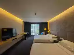 • 宽敞的大堂配备现代风格的舒适沙发和3D立体墙面设计,营造出奢华而温馨的氛围。