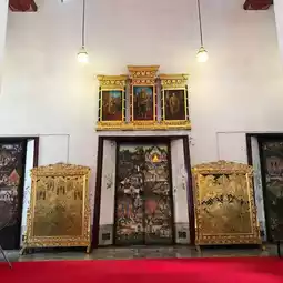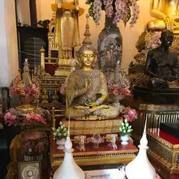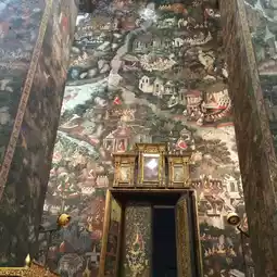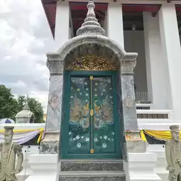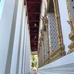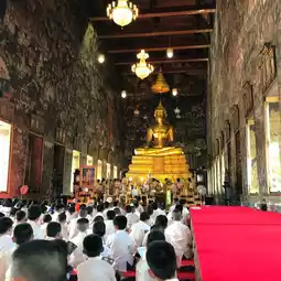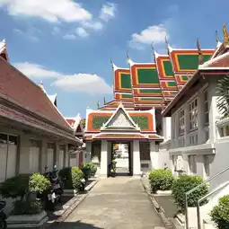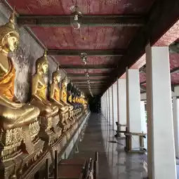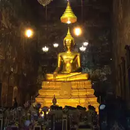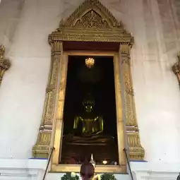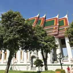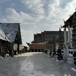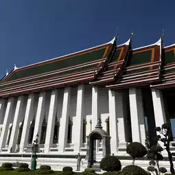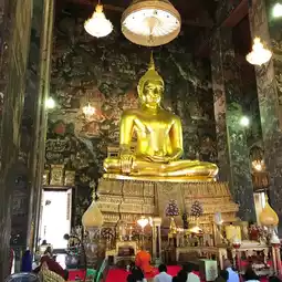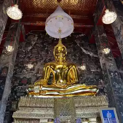 素泰寺(Wat Suthat Thepwararam Ratchaworamahawihan)是曼谷市中心的一流皇家寺庙之一,以其宏伟的佛殿(viharn)而闻名,殿内供奉着来自素可泰的大型青铜佛像“释迦牟尼佛”(Phra Sri Sakyamuni)。寺庙内部氛围宁静祥和,精美的古老壁画细致地描绘了《拉玛坚》(Ramakien)的故事。
