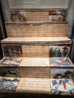 佛龛:展示棕榈叶扇、钵盂和僧袍。