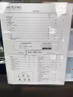 主打咖啡。他们的主要策略是提供价格亲民的饮品,每杯起价约为 50-60 泰铢。凭借精细的管理和精选的原料,ONE TO TWO Coffee 能够以更实惠的价格提供饮品。这家店的菜单上有很多不错的选择,例如: