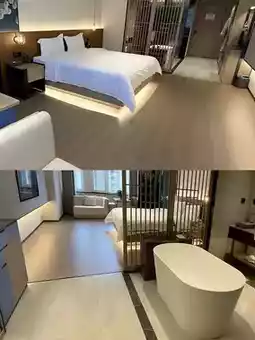 房间干净整洁,床品舒适无比,仿佛睡在云朵上,保证您一夜好眠。房间配备智能设施,一键即可控制灯光和空调。浴室设有独立淋浴间和浴缸,洗浴用品品质上乘,沐浴后散发淡淡清香。🍱