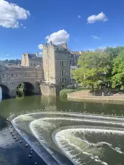 下一站是历史悠久的普尔特尼桥。这座桥本身看起来可能与英国其他中世纪桥梁并无二致,但桥上弯曲的堰坝结构赋予了它独特的魅力。