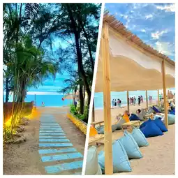 银沙:“世界第一沙滩”:绵延24公里的银白色细沙,如粉末般细腻,在阳光下闪闪发光。清晨赤脚漫步,观赏退潮后留下的贝壳和珊瑚;黄昏时分驾驶沙滩车追逐落日,体验“退潮落云”的壮丽景色。